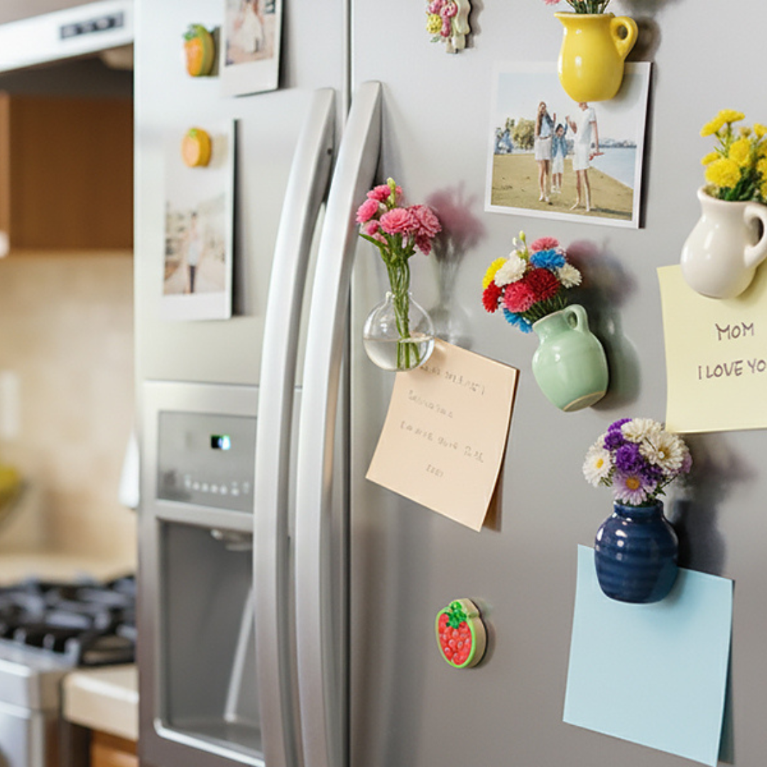 I mini VASINO™ aggiungono un dettaglio delicato e decorativo che cambia completamente l’atmosfera della tua cucina. I piccoli fiori freschi o secchi diventano un accento estetico che porta calore, stile e personalità nella tua casa. Ogni mini portafiori offre quel fascino moderno capace di trasformare qualsiasi frigorifero in uno spazio più accogliente, creativo e pieno di vita. Un modo semplice ed elegante per dare un tocco speciale alla tua cucina ogni giorno.